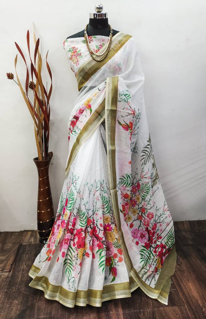 | Product Name | White Printed Pure Cotton White Saree With Blouse | |