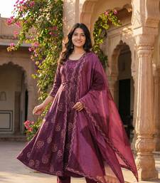 Product Name Purple Anarkali Kurta Set With Pants And A Dupatta.