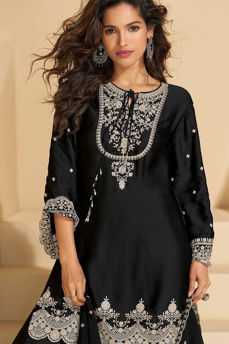 | Product Name | Black Chinnon With Embroidery Sequin Thread Work Palazzo Set | |