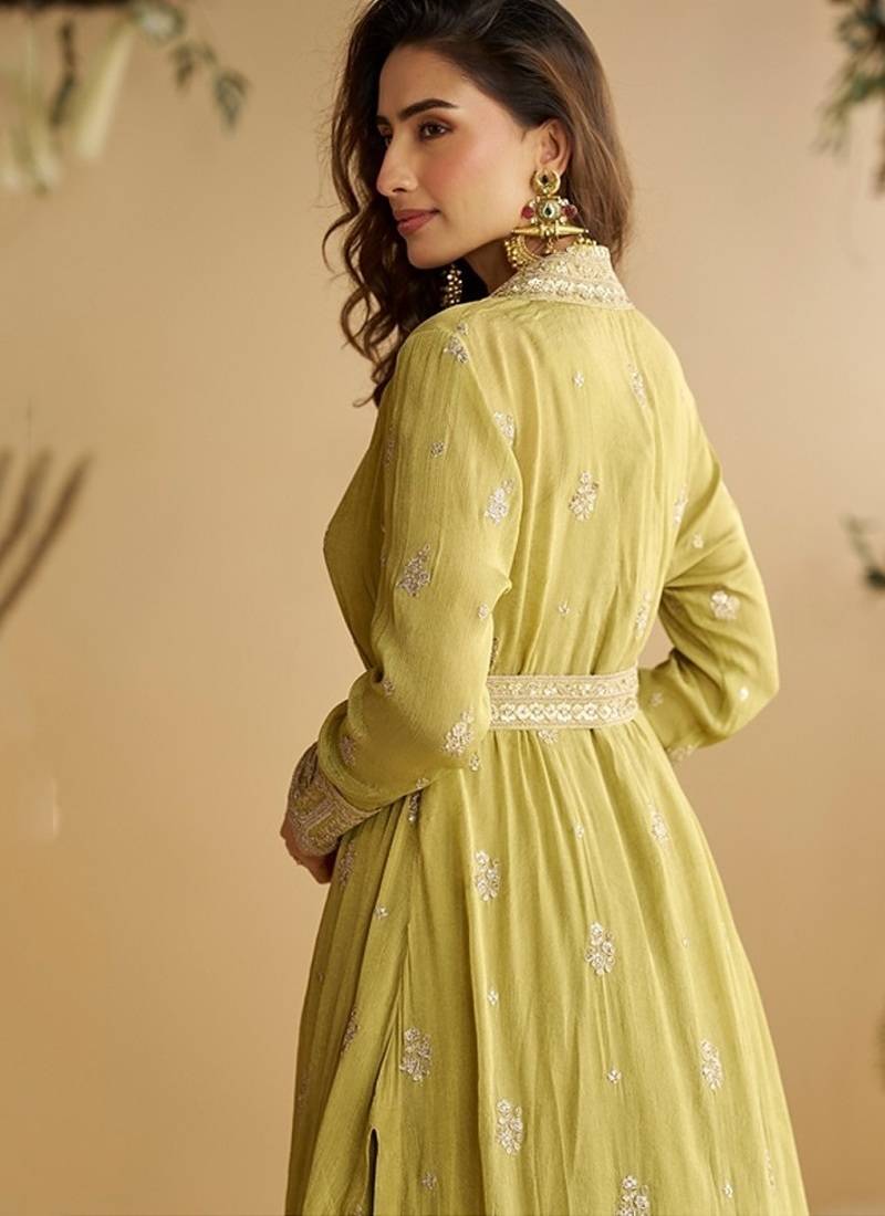 Perrot chinon silk with embroidered work gown with shrug & belt