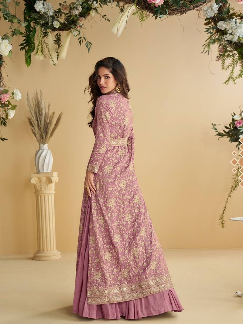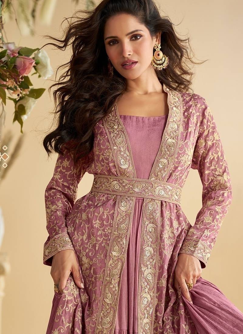 | Product Name | Pink Chinon Silk With Embroidered Work Gown With Shrug & Belt | |