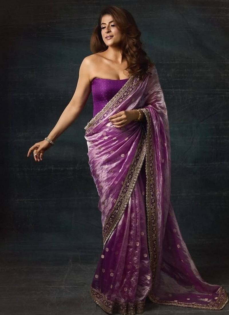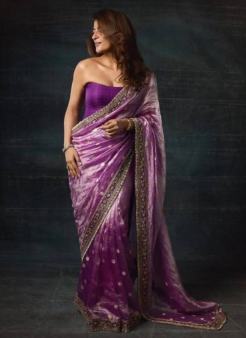| • | Saree | : | Color- Purple / Fabric- Silk Blend |