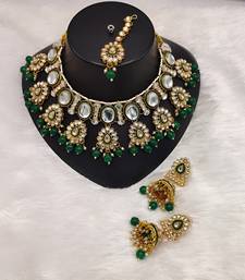 This Versatile Set Effortlessly Complements Pastel Colored Outfits, Particularly Mint Green, Cream, Or Pale Pink Lehengas And Sarees. The Unique Combination Of Mint Green Meenakari With Pearl Accents Creates A Fresh, Contemporary Take On Traditional Bridal Jewelry. The Matching Maang Tikka Adds The Perfect Finishing Touch To Complete Your Bridal Ensemble