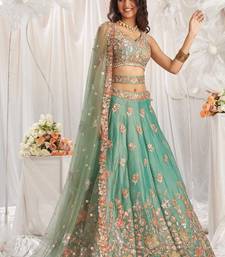 Pista green organza zari sequin embroidery work lehenga choli