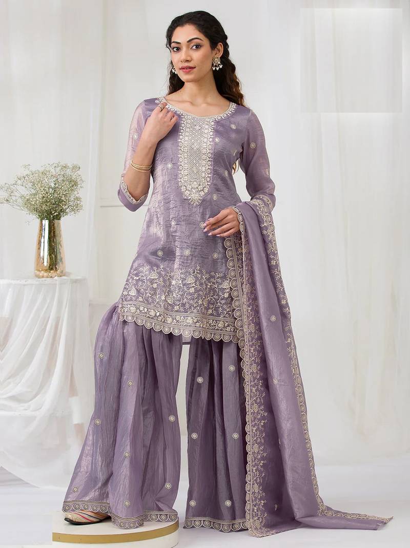 Product Name Purple Embroidered Gold Crush Semi Stitched Palazzo Style Salwar Suit
