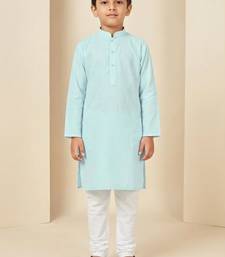 Blue art silk printed kurta pajama for boys