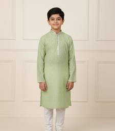 Green art silk printed kurta pajama for boys
