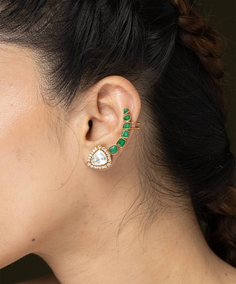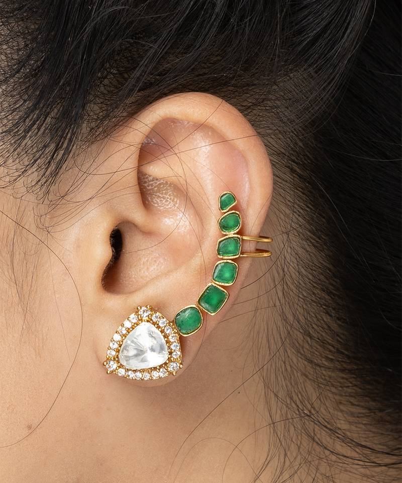 | Product Name | Gold Plated Kundan Green Stones Ear Cuff Earrings | |