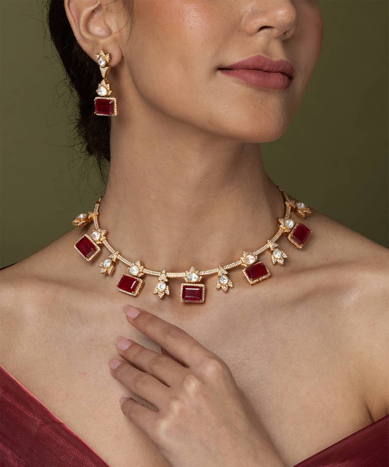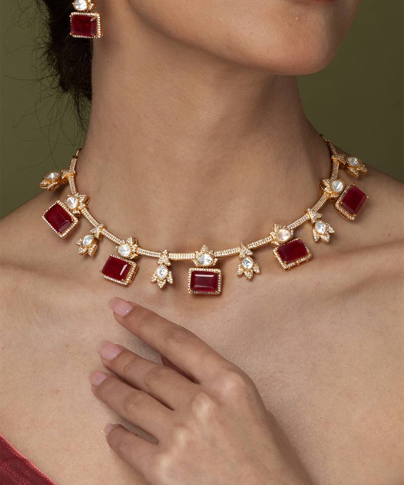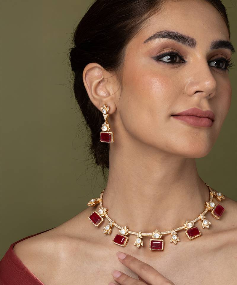 | Product Description | Transform Your Attire Instantly. Slip On This Luxurious Ruby Red And Gold Necklace Set To Bring An Air Of Instant Heritage And Warmth To Your Presence, Making Every Moment Feel Grand And Memorable.