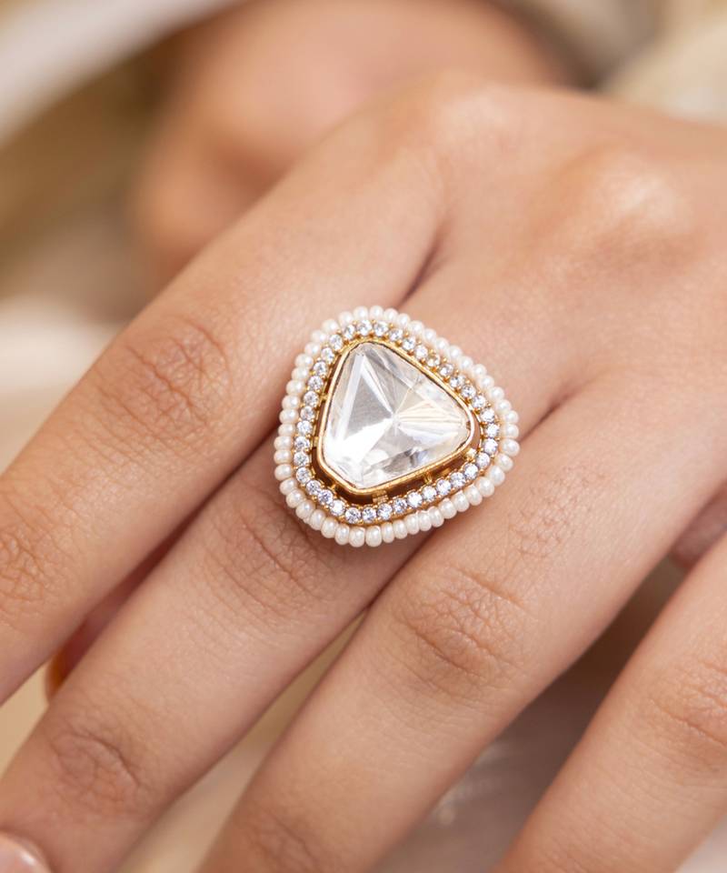 Gold plated kundan ring