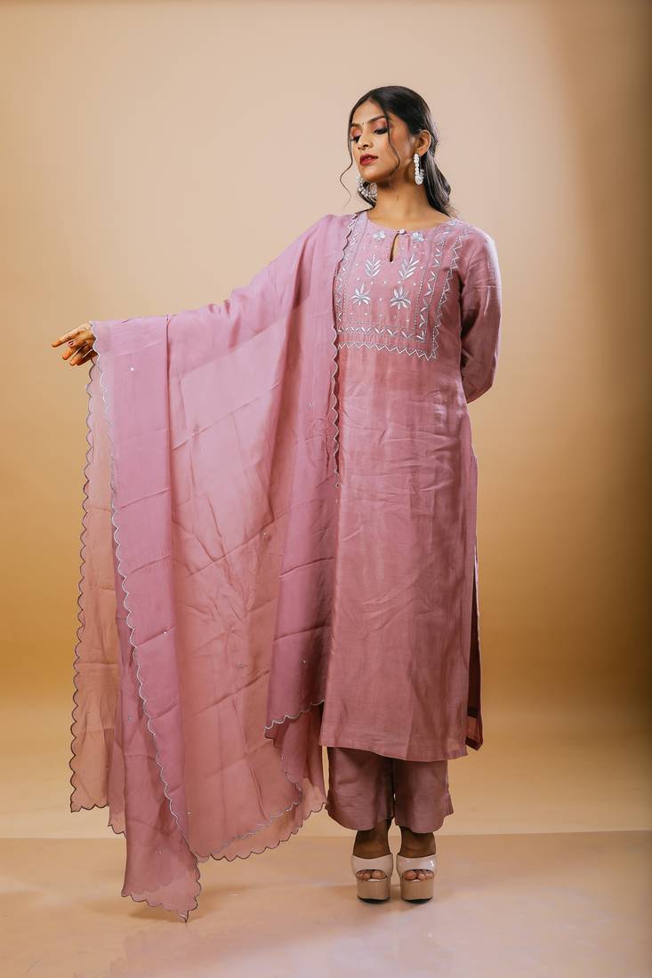 Light purple chanderi embroidered kurta sets