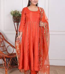Orange embroidered crepe kurta pant with dupatta