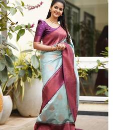 Ethnic sky blue self design art silk all seasons saree with unstitched blouse