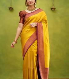 Fashionable gold banarasi south silk fancy saree with unstitched blouse
