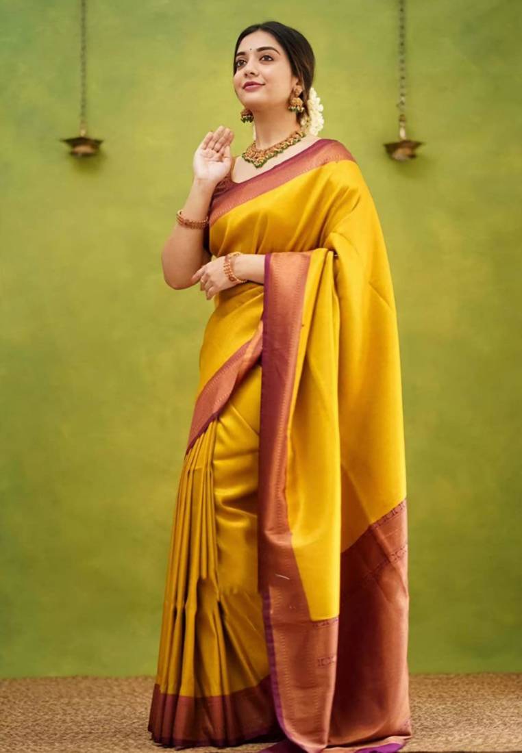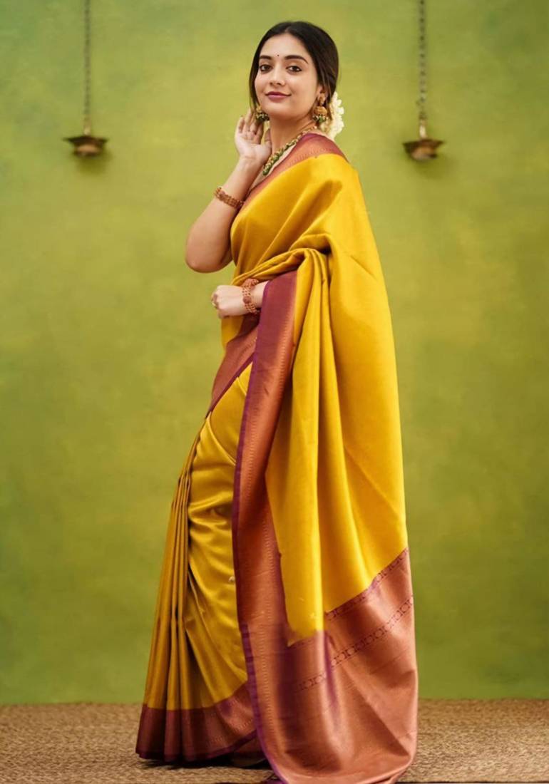 | Product Name | Fashionable Gold Banarasi South Silk Fancy Saree With Unstitched Blouse | |