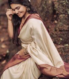 Floral light cream banarasi art silk all seasons saree with unstitched blouse