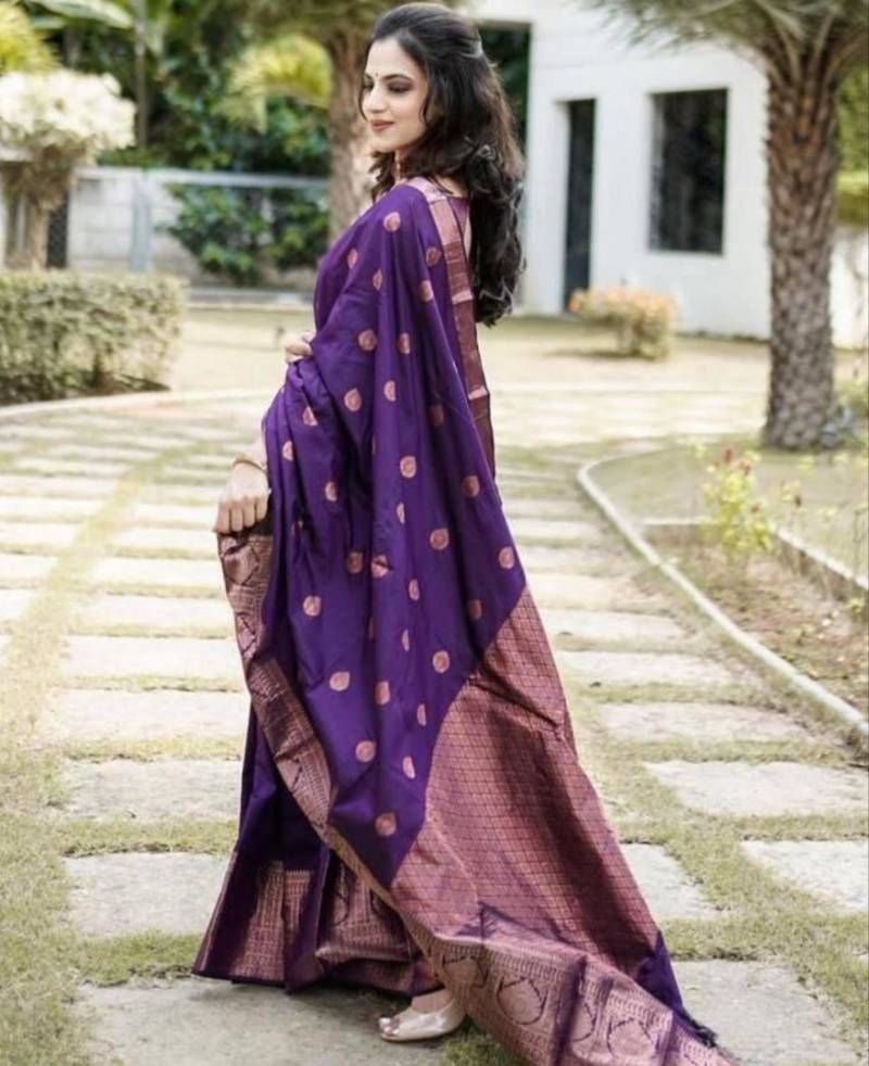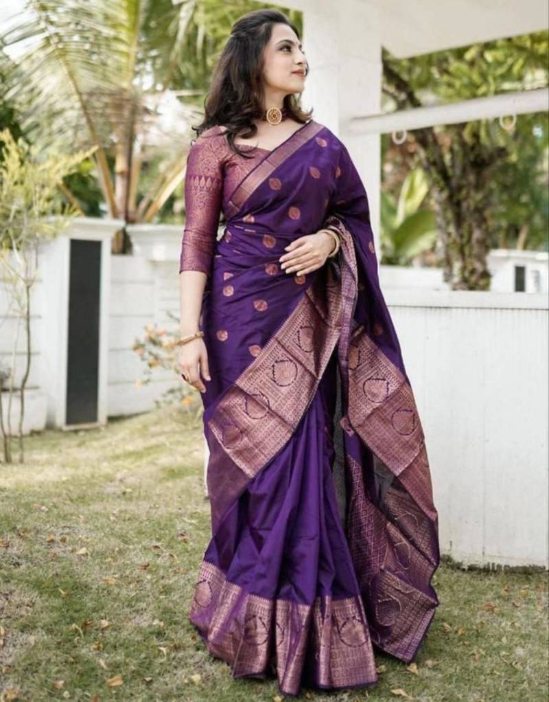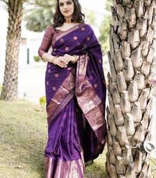 New collection purple jacquard art silk all seasons saree with unstitched blouse