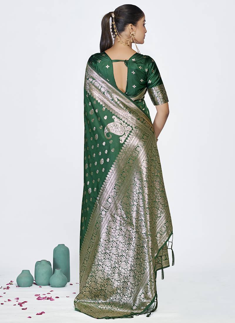 | Product Description | A Regal Saree In Rich Emerald Green Featuring Classic Banarasi Weaving With Antique Golden Zari Work. Designed For Elegance And Comfort, This Saree Is Ideal For Festivals, Receptions, And Traditional Events. Its Rich Detailing Adds A Touch Of Sophistication To Your Ethnic Wardrobe. |