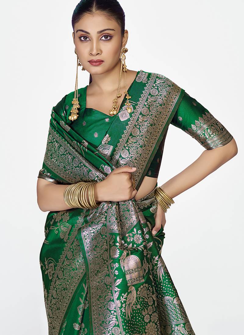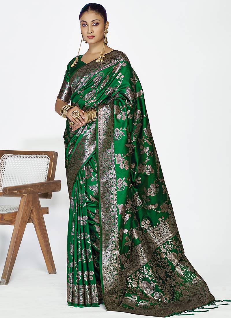 | Product Name | Emerald Green Banarasi Art Silk Saree With Intricate Zari Work | |