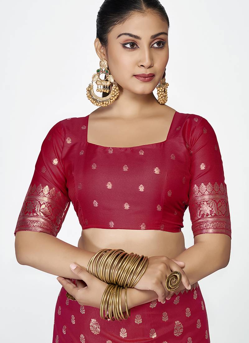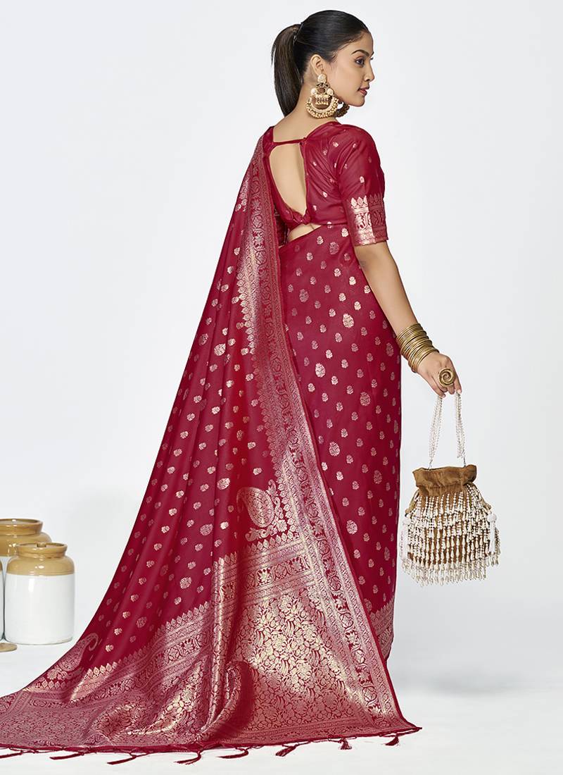 | Product Description | A Timeless Maroon Saree Crafted With Shimmering Golden Zari Work That Enhances Its Traditional Beauty. The Fine Weaving, Grand Border, And Smooth Drape Make It A Must Have For Weddings And Festive Occasions. This Piece Radiates Elegance And Classic Ethnic Charm. |