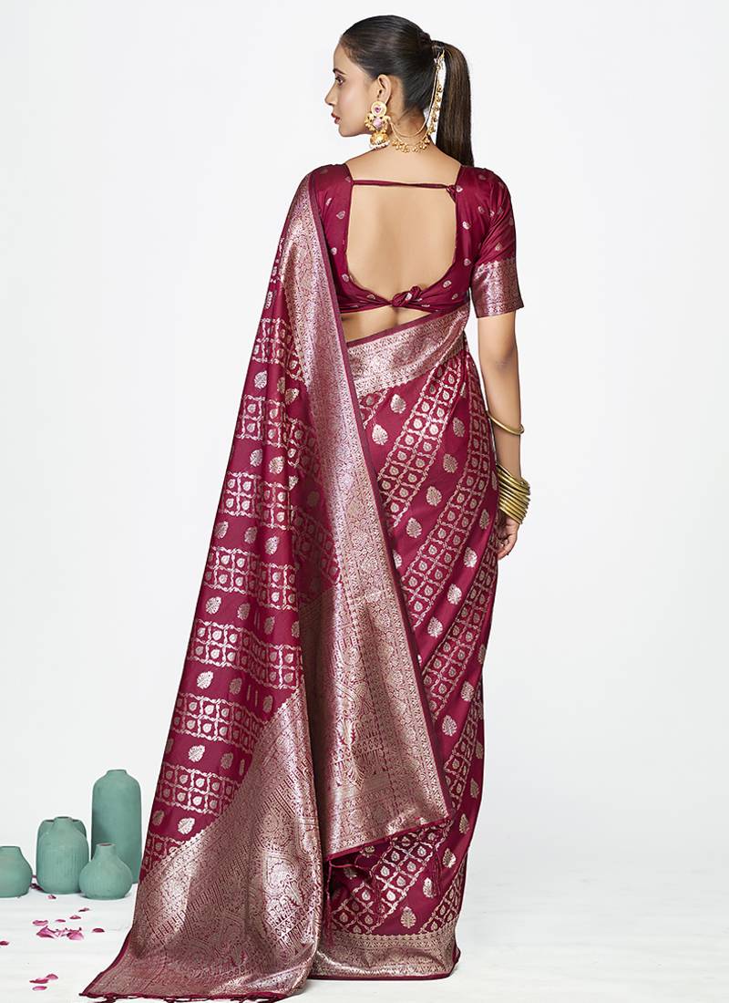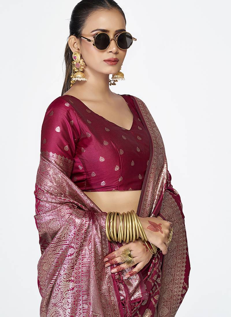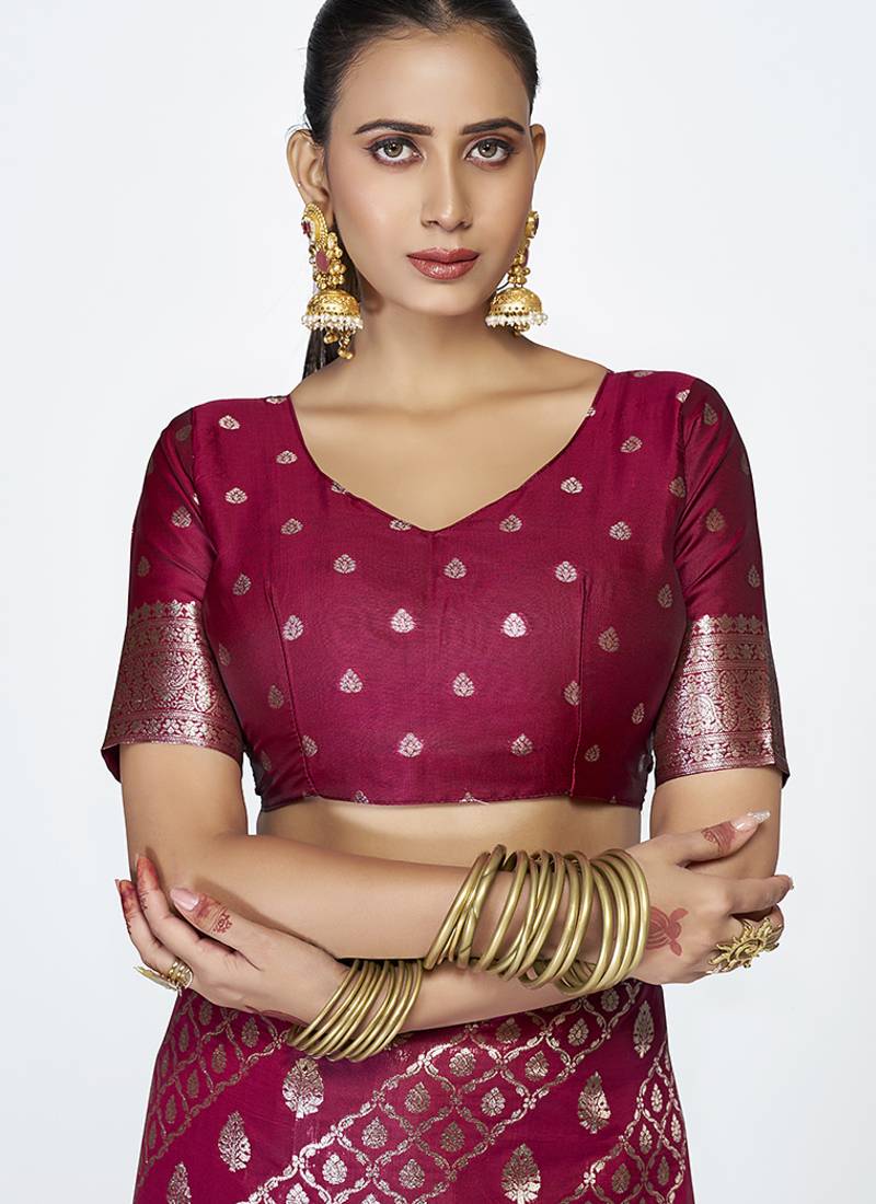 | Product Description | Designed For The Modern Woman Who Loves Tradition, This Wine Magenta Saree Features Luxurious Gold Zari Weaving Throughout. The Rich Tone And Elegant Texture Make It A Perfect Pick For Weddings, Receptions, And Festive Events. Comes With A Coordinated Woven Blouse For A Stylish Finish. |