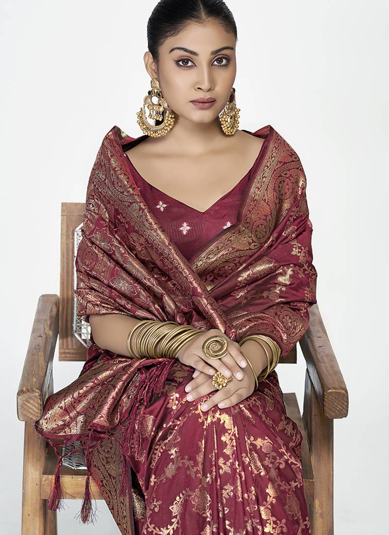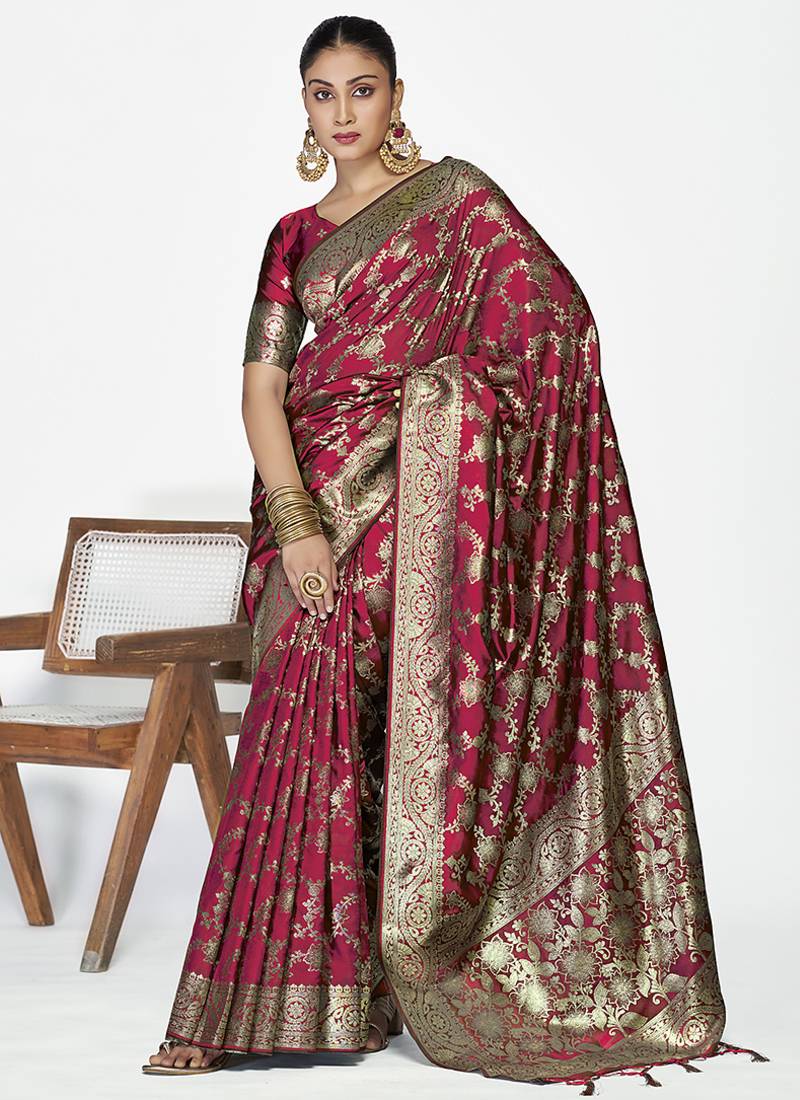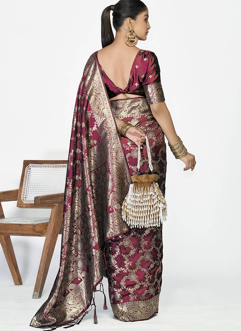 | Product Name | Wine Red Banarasi Art Silk Saree With Antique Golden Zari Work | |