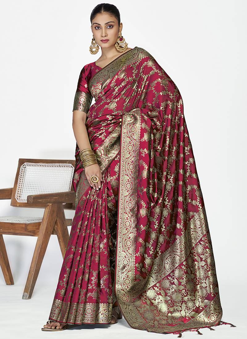 | Product Description | This Wine Red Banarasi Silk Saree Features Exquisite Antique Golden Zari Weaving With A Full Jaal Design. The Deep And Luxurious Shade Makes It Perfect For Bridesmaids, Engagement Ceremonies, Traditional Festivals, And Family Events. Soft, Elegant, And Beautifully Crafted For A Premium Ethnic Look. |