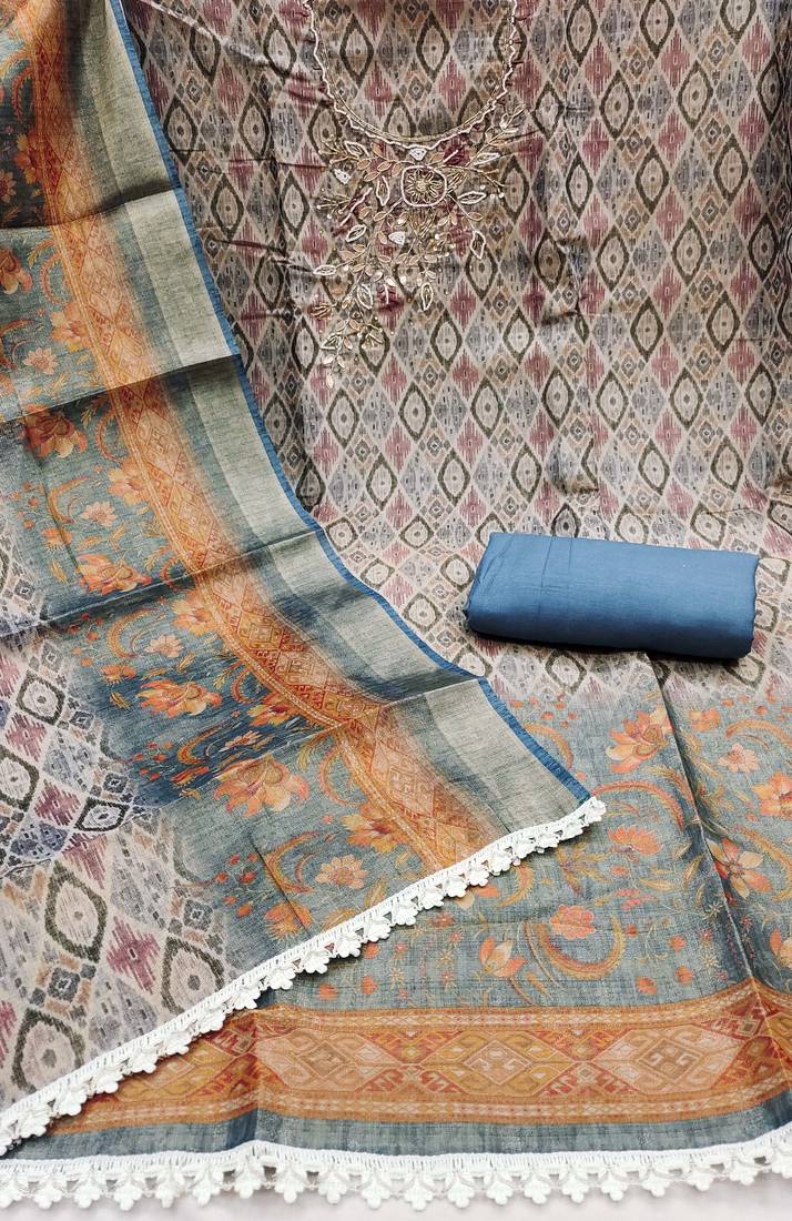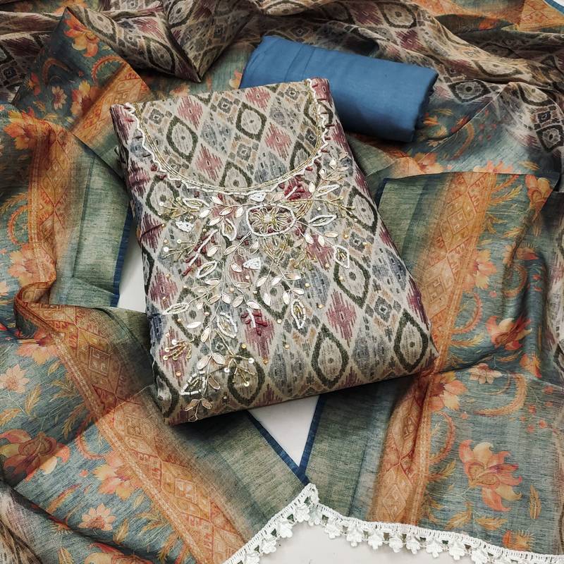 | Product Name | Blue Cotton Silk Handwork Unstitched Dress Material | |
