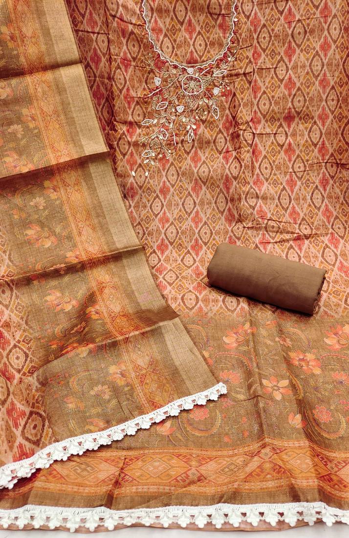 | Product Name | Brown Cotton Silk Handwork Unstitched Dress Material | |