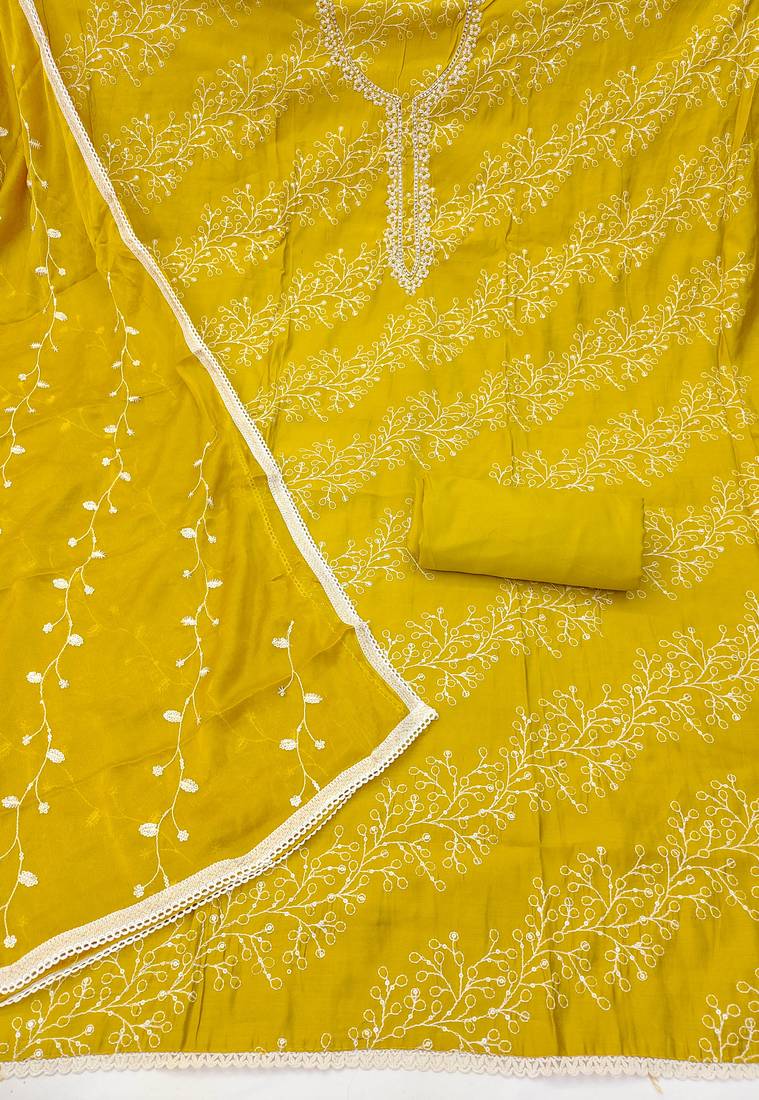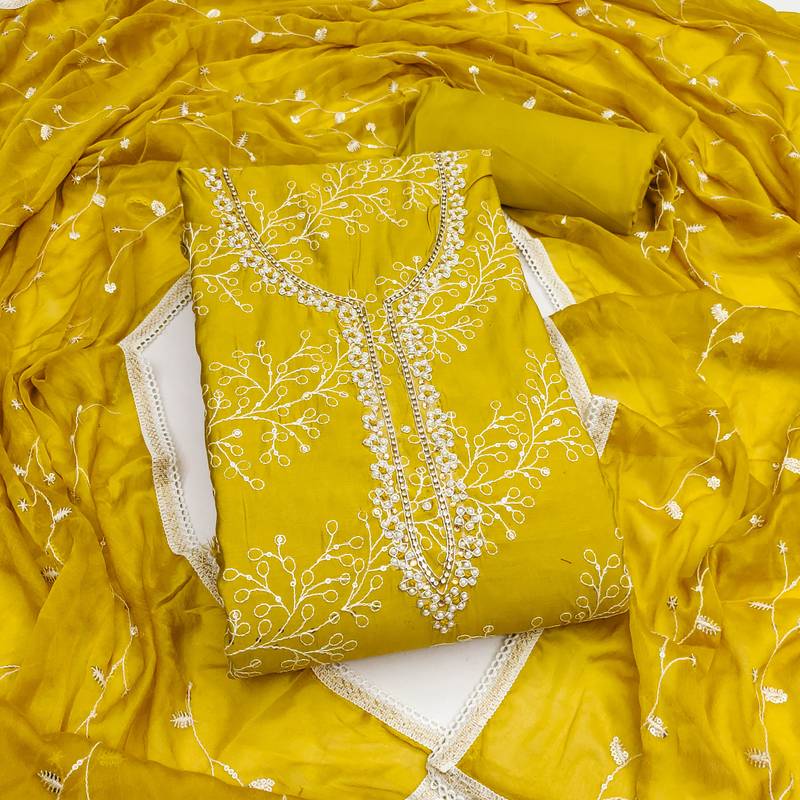 | Product Name | Lemon Yellow Cotton Embroidered Unstitched Dress Material | |