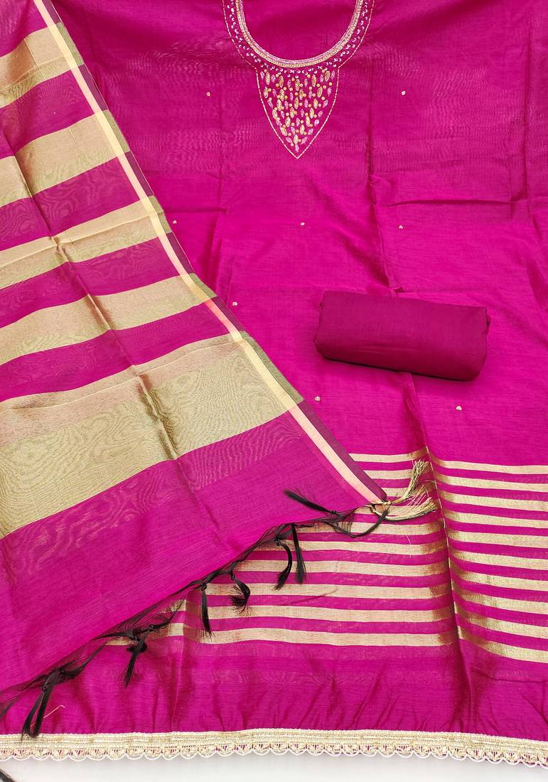 | Product Description | Kimisha Presents Beautifully Designed & Latest In Trends Women's Ethnic Chanderi Cotton With Embellished Un Stitched Straight Suit. It Is Available In Free Size And Can Be Stitched To Suit Your Measurements. It Is Alterable Up To Chest Size Of 46, Comes With Chanderi Cotton Fancy Dupatta And Plain Rayon Un Stitched Bottom. This Dress Would Add Elegance To Your Look. Wear It At Any Occasion By Pairing It With Matching Ethnic Jewelary Like Ethnic Jumkas And Ethnic Footwear Like Mojaris And Juties To Get Complete Ethnic As Well As Fab Festive Look & Get Complimented For Your Impressive Choice. |