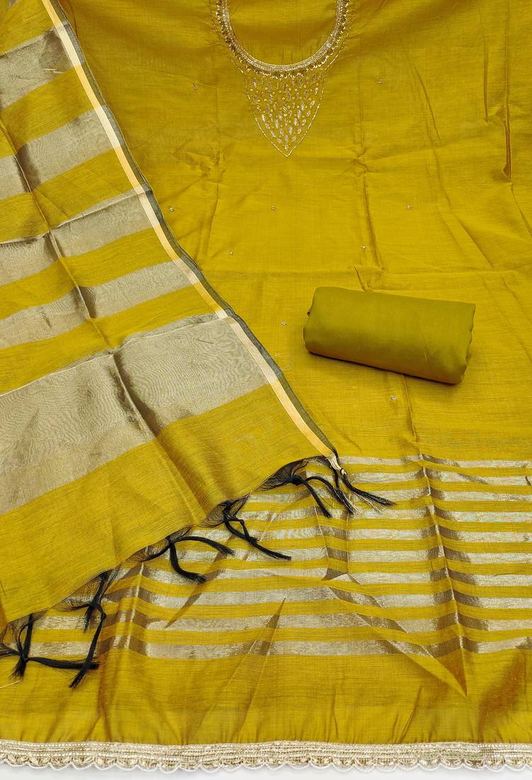 | • | Dupatta | : | Color- Mehendi / Fabric- Blended Cotton |