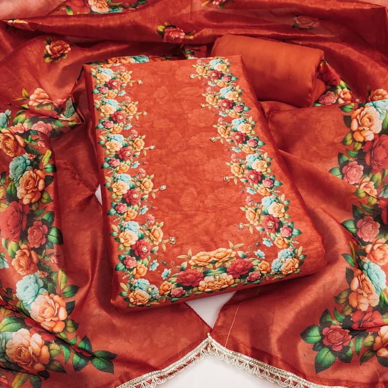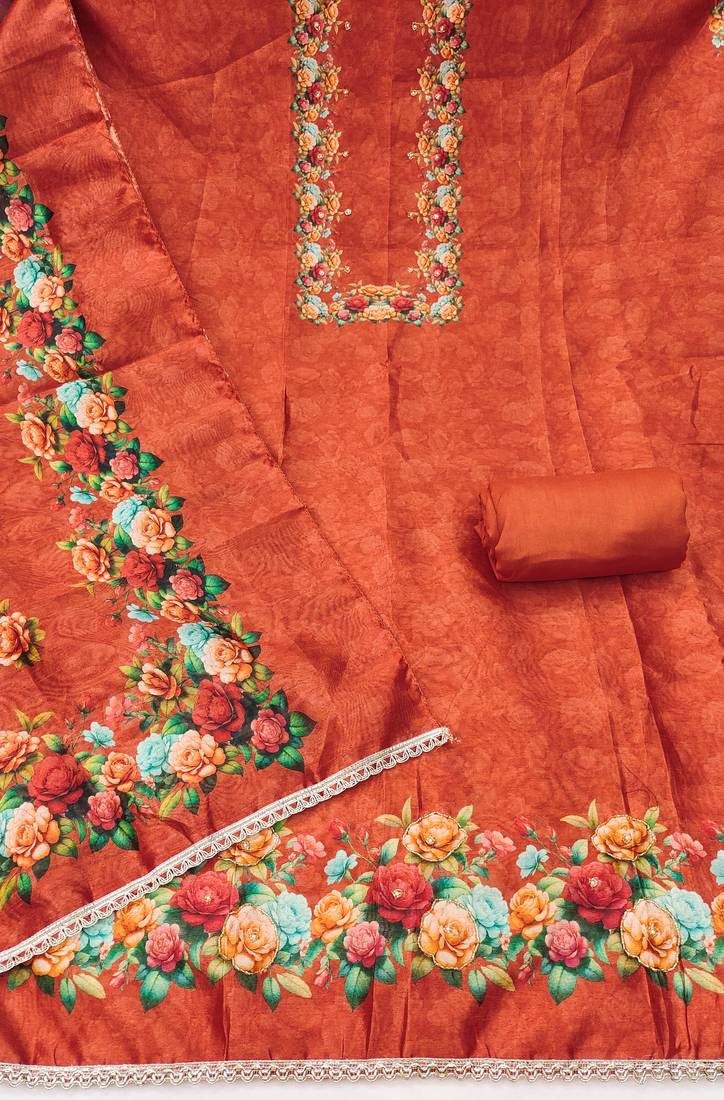 | Product Name | Rust Silk Cotton Digital Print Unstitched Dress Material | |