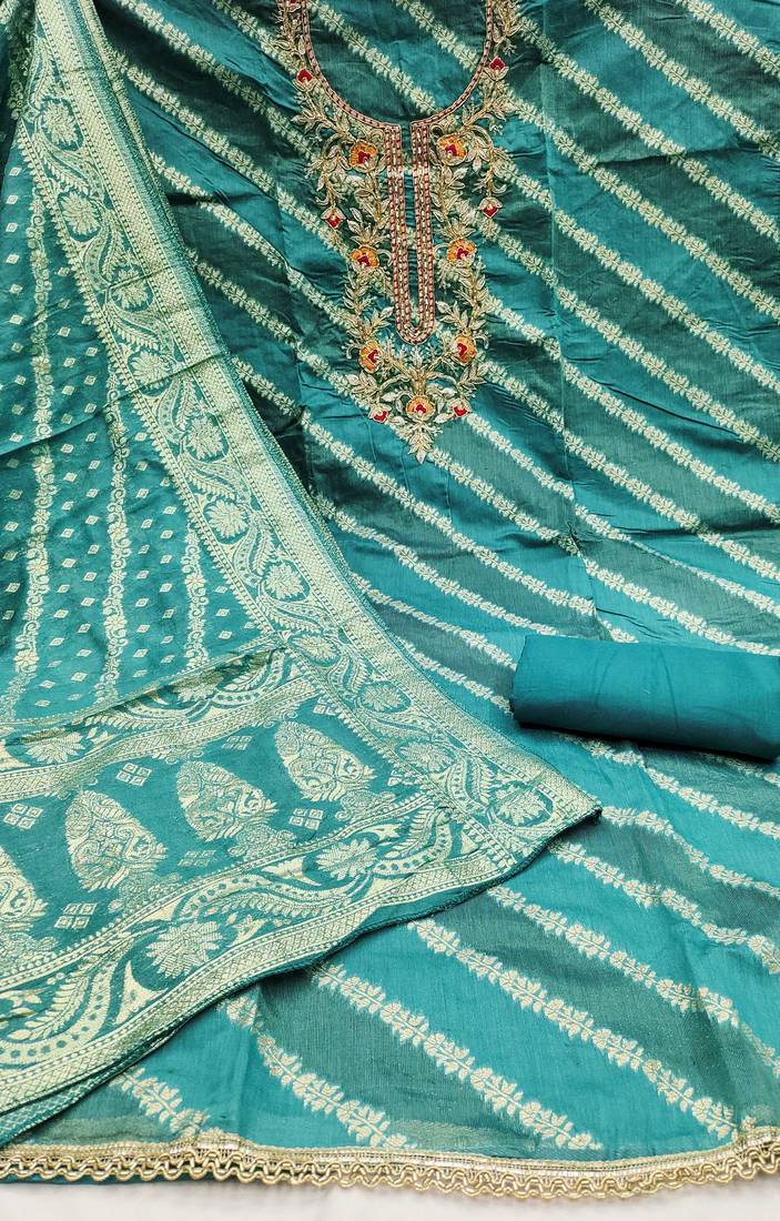 | Product Name | Turquoise Cotton Silk Embroidered Unstitched Dress Material | |
