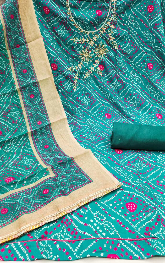 Product Name Turquoise Modal Cotton Bandhni Unstitched Dress Material