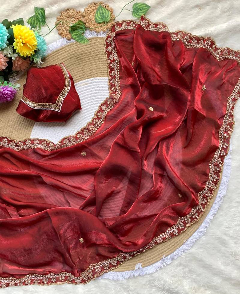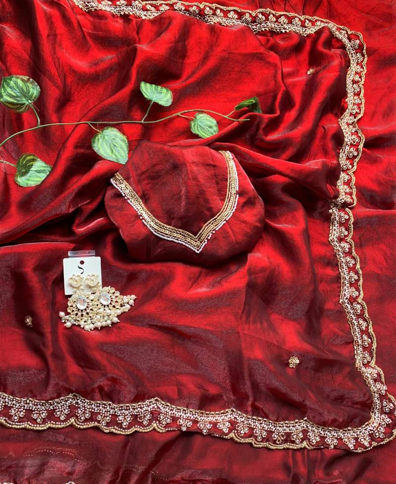 | Product Name | Designer Luxury Red Wedding Wear Hand Embroidery Saree For Women | |