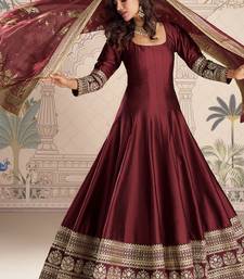 Maroon embroidered silk anarkali-salwar-kameez semi stitched