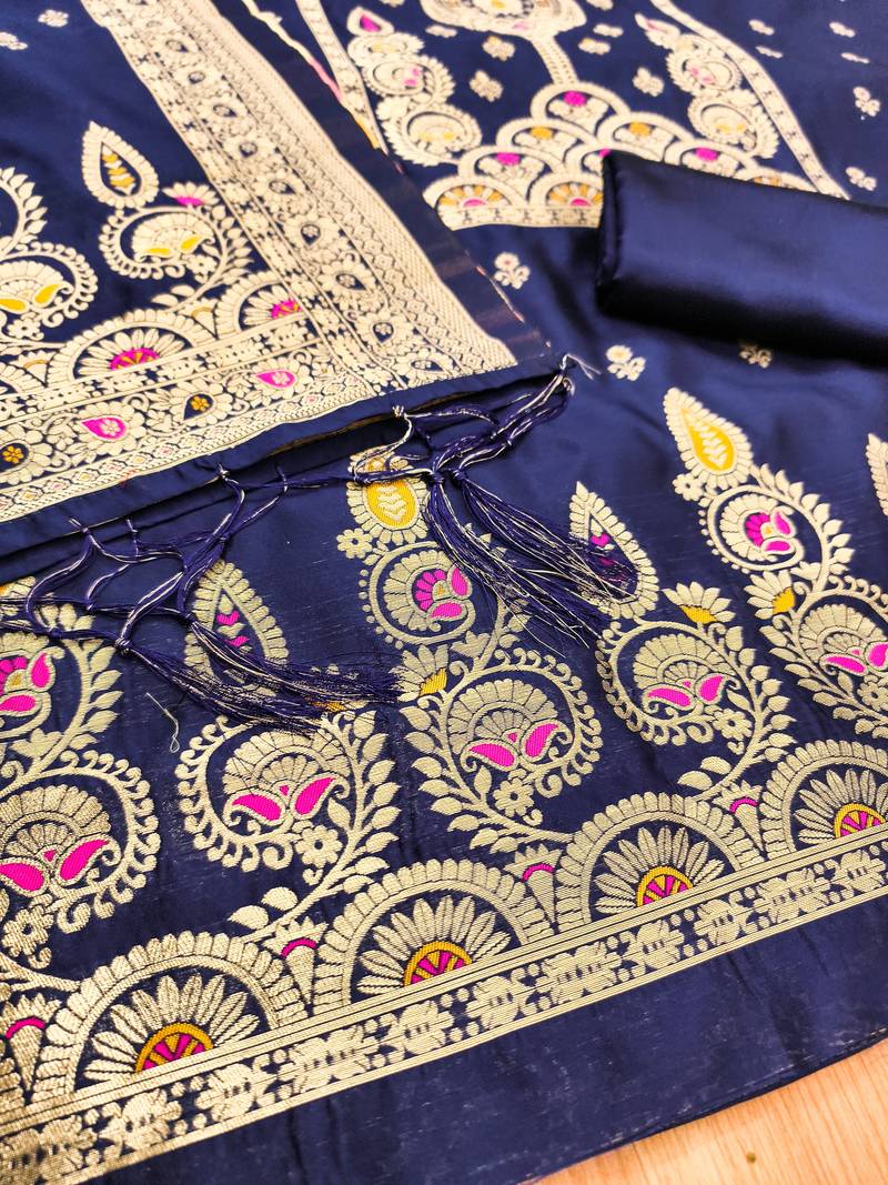 | Product Name | Navy Blue Zari Woven Banarasi Dress Materials | |