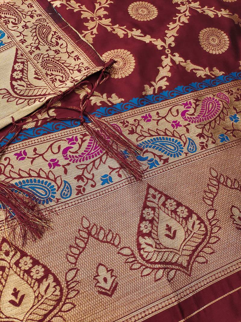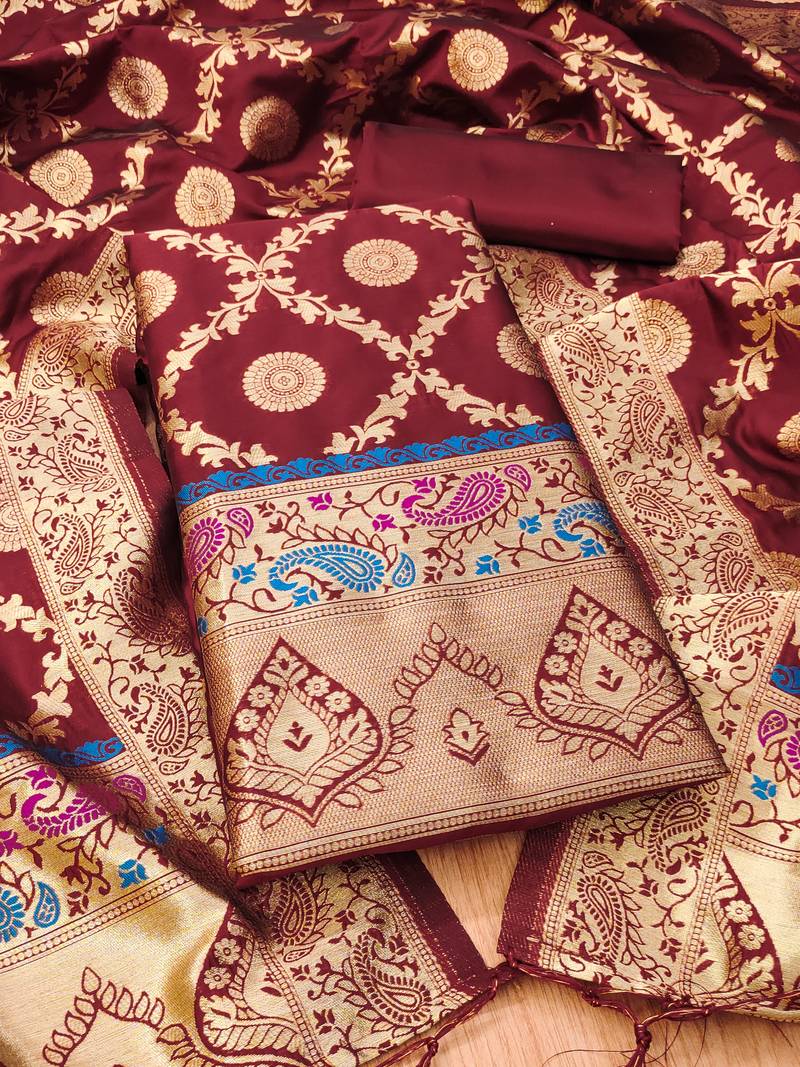 | Product Name | Maroon Zari Woven Banarasi Dress Materials | |