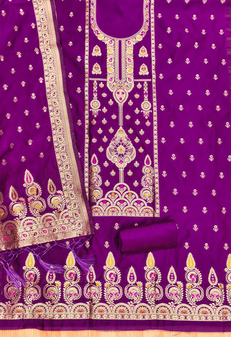 Purple zari woven banarasi dress materials unstitched