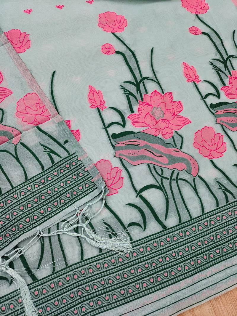 Muga Cotton 3 Pc Jamdani Salwar Suit Dress Material With Pichwai Weaving On Top And Dupatta