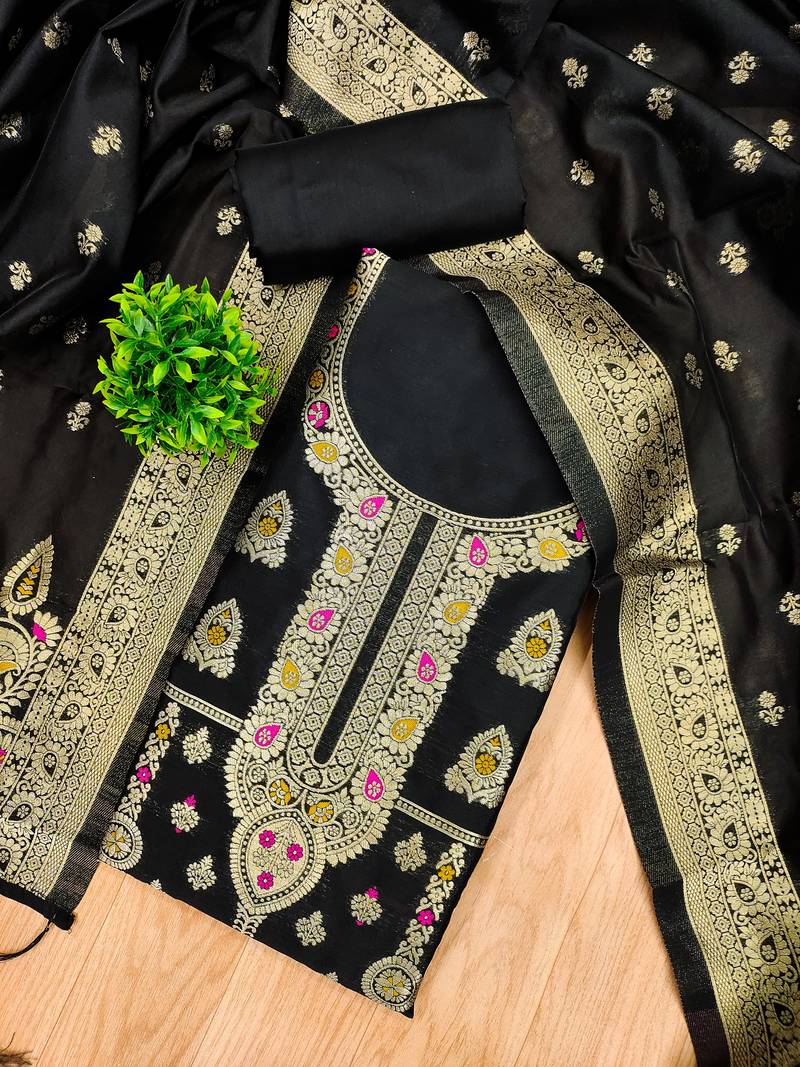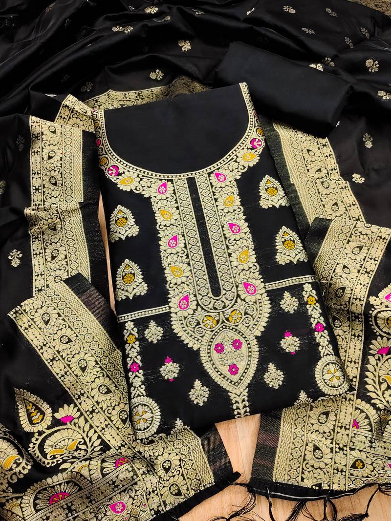 Black zari woven banarasi dress materials unstitched