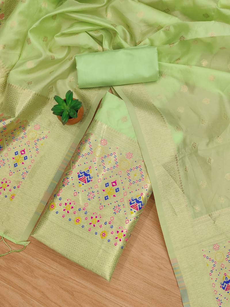 | Product Name | Light Green Zari Woven Banarasi Dress Materials | |