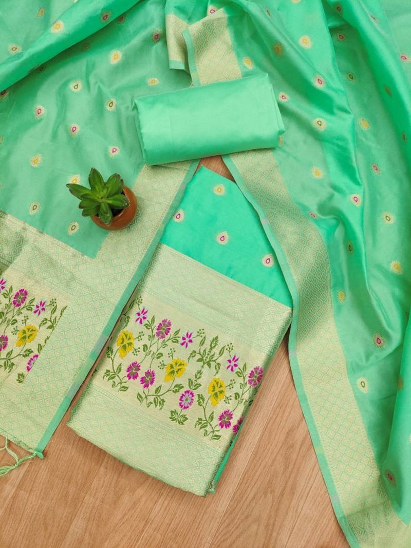 | Product Name | Sea Green Zari Woven Banarasi Dress Materials | |