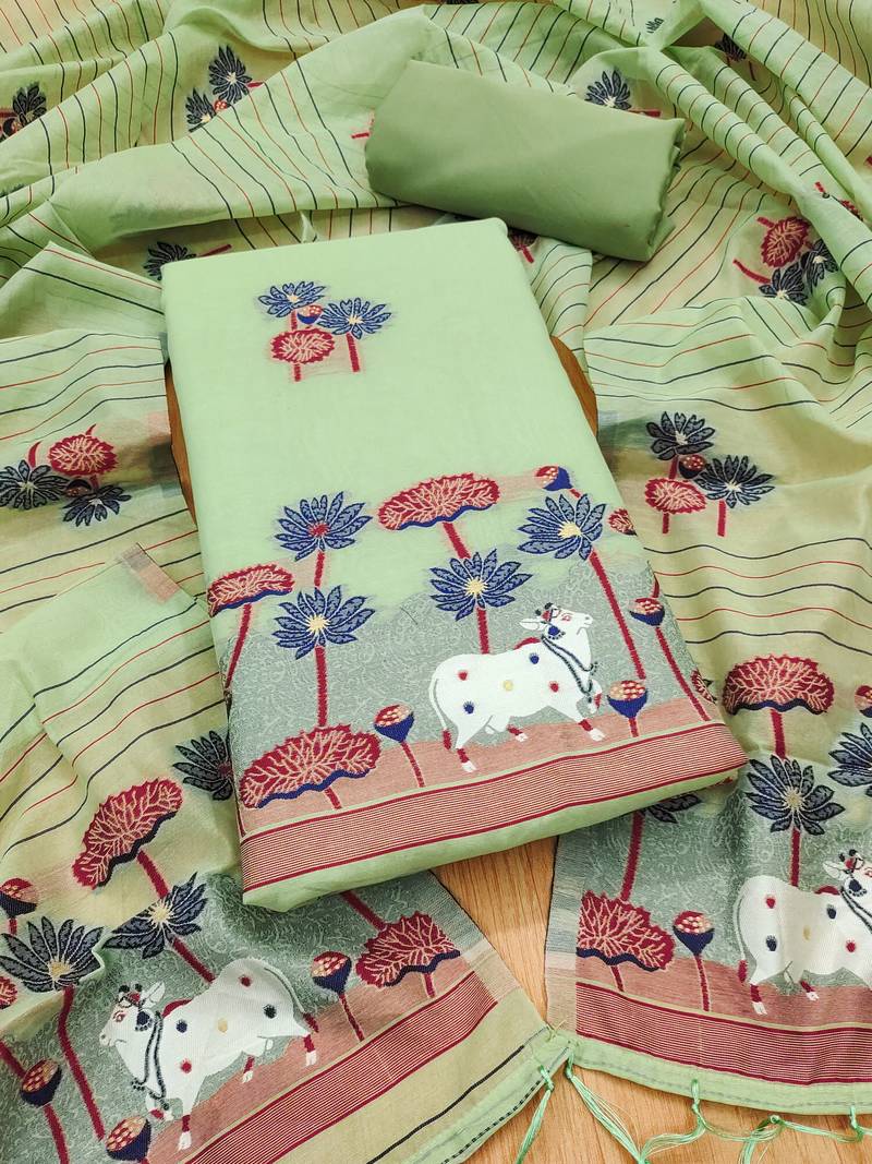 | Product Description | Catalog ~ Ahalya Vol 11 ♥️♥️ Muga Cotton 3 Pc Jamdani Salwar Suit Dress Material With Pichwai Weaving On Top And Dupatta Top: Muga Cotton, Jamdani Pichwai Weaving, 49" Hight, 0.50 Mtr Sleeve Duppatta: Muga Cotton, Jamdani Pichwai Weaving, 2.3 Mtr Cut, Tussels Both End Bottom: Semi Cotton, 2.5 Mtr Cut Disclaimer : Colours May Vary A Little Due To Different Lighting Effects |