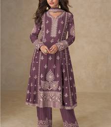 Women onion embriodery sequence work chinion silk semi-stitched salwar suit semi stitched