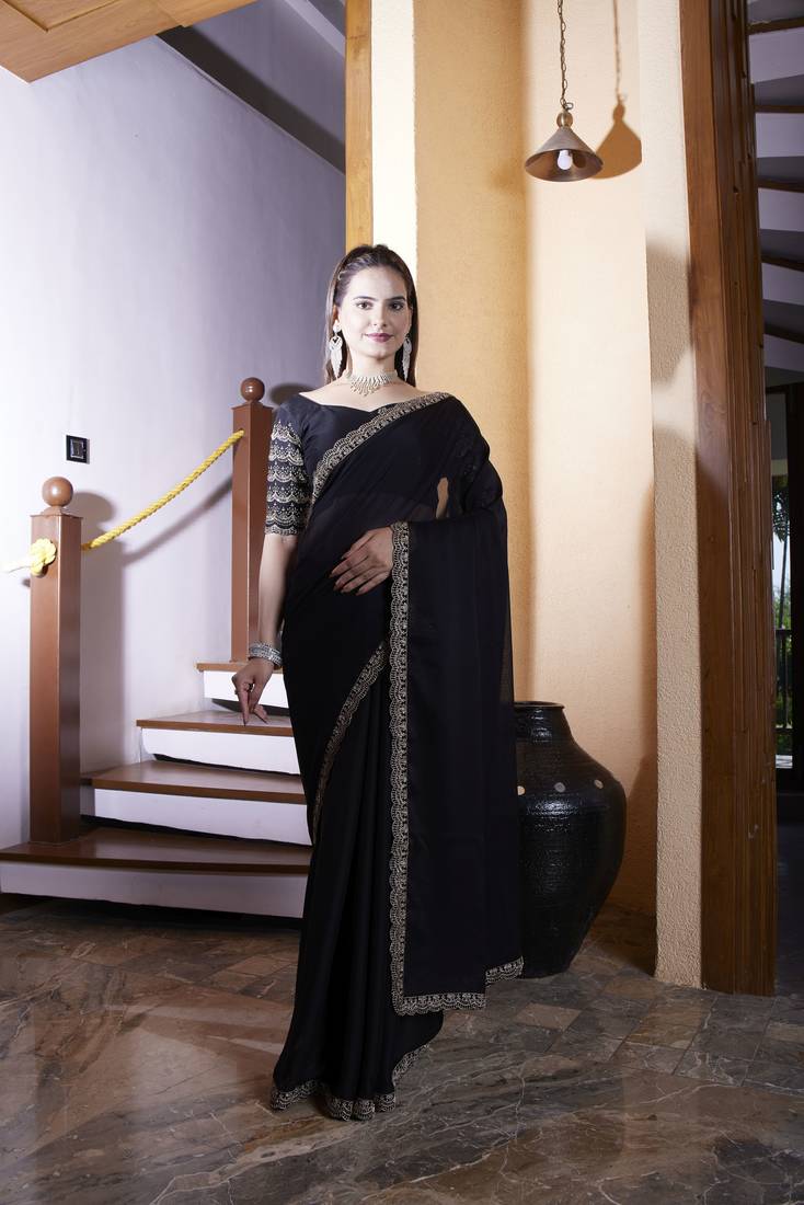 | Product Description | Make A Bold Statement With This Stunning Black Saree Made From Luxurious Shimmer Jacquard Fabric. The Saree Boasts A Rich Texture And Elegant Shimmer That Adds A Touch Of Glam To Any Festive Or Formal Occasion. Perfect For Parties, Weddings, Or Celebrations, It Combines Tradition With A Modern Appeal. |