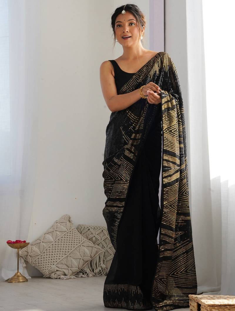 | • | Saree | : | Color- Black / Fabric- Faux Georgette |