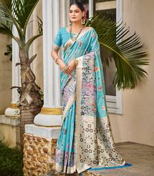 Blue color cotton silk fabric woven meenakari designer saree