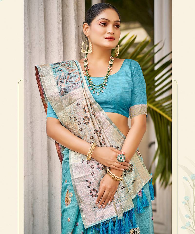 | Product Name | Blue Color Cotton Silk Fabric Woven Meenakari Designer Saree | |